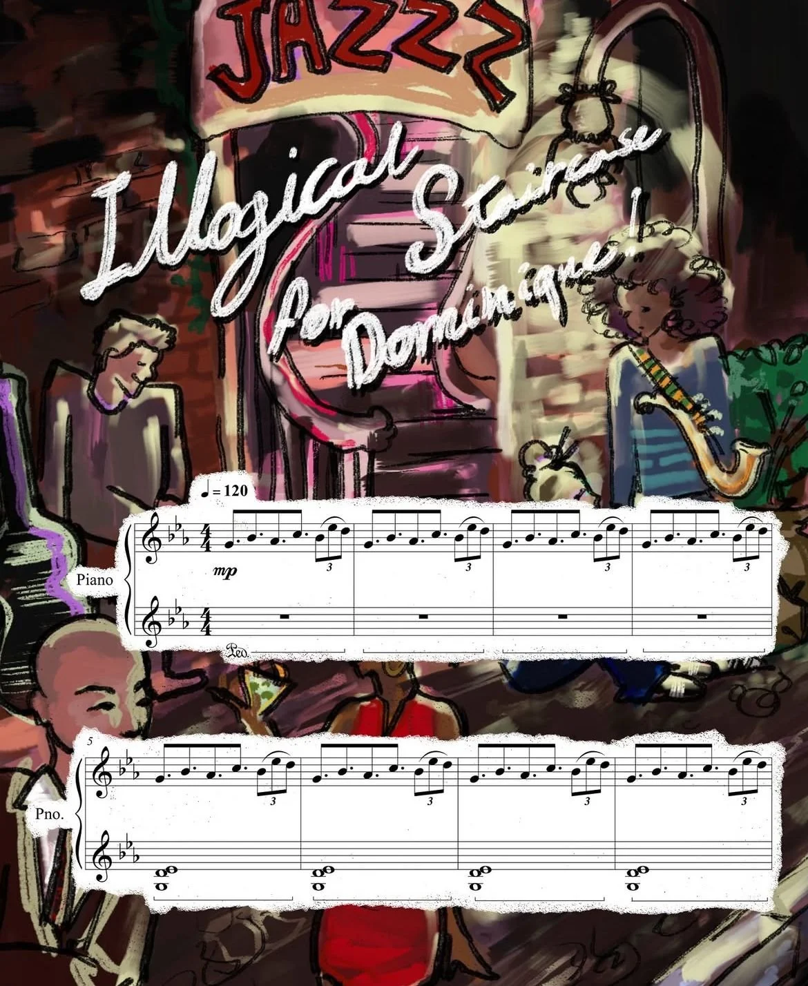 The original digital sheet music (score), professionally typeset and overlaid on an artistic visual background, transforming it into a true collector’s item